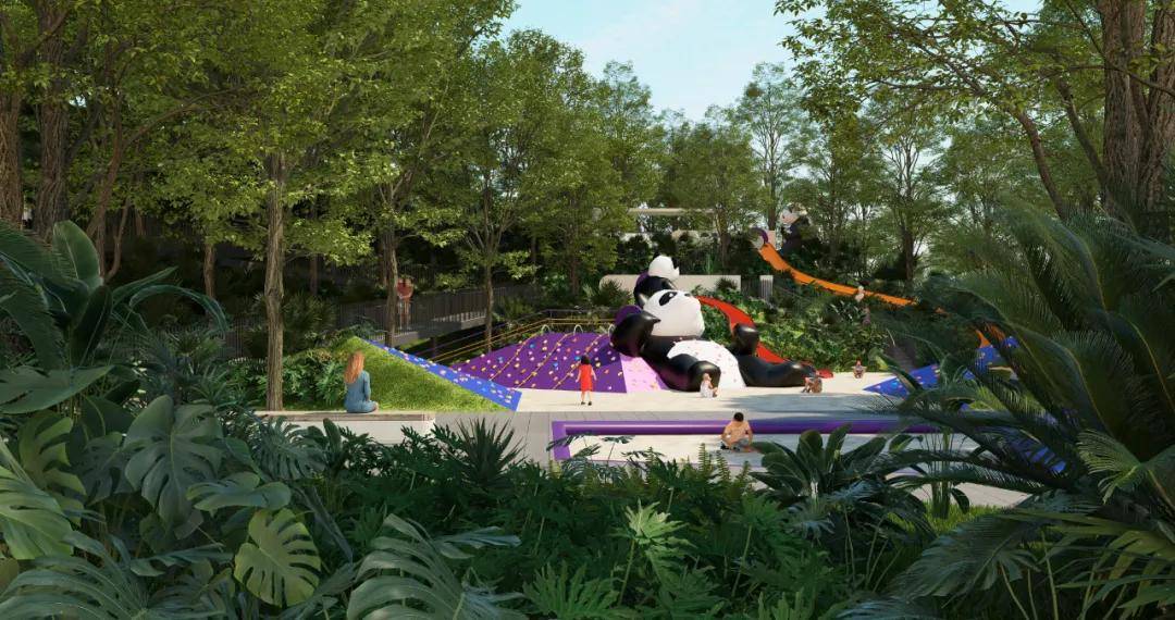 从熊猫乐园曝出的效图看,它特别定制了一条“能看园景”的熊猫阶梯,站在高处,能尽情领略园林的葱茏绿意。