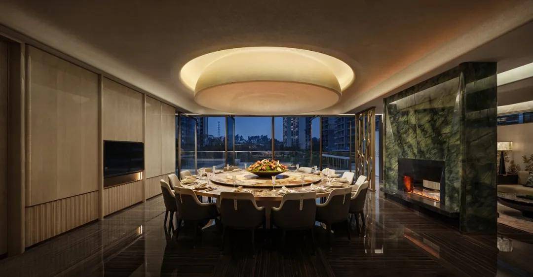 下沉式的50米标准赛道泳池,把度假式的松弛感搬入社区;容纳16人聚会的奢华私宴厅,赋予商务接待、亲朋聚会足够的尊贵感和私密感。