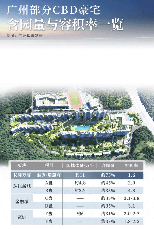我们可以看到,即便是珠城、琶洲、金融城这些半亿豪宅云集的地方,很多项目的容积率,基本也都在2以上。