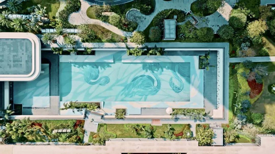 不仅如此,纵深极大的园林内,瑞麓府还在其中,穿插了包括跑步、慢行步道、游泳池、网球场、篮球场、羽毛球场在内的8大运动设施场景。