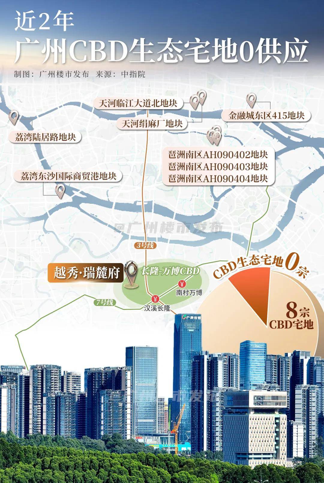 中指院数据显示,近2年珠城、琶洲、金融城、白鹅潭、长隆万博5个CBD,共出让了8宗宅地,其中CBD江景有5宗。