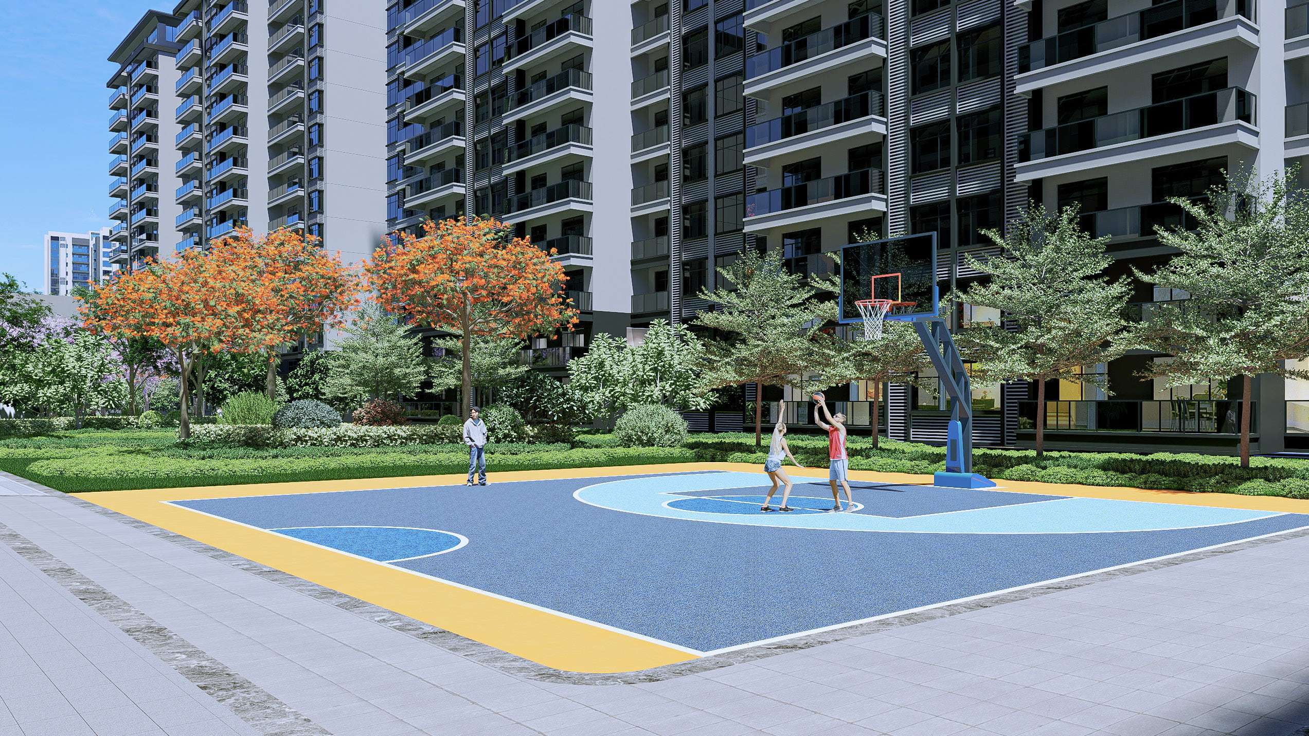 外立面融合真石漆、高级涂料及玻璃阳台,以简约大气的线条,塑就现代建筑的艺术质感。