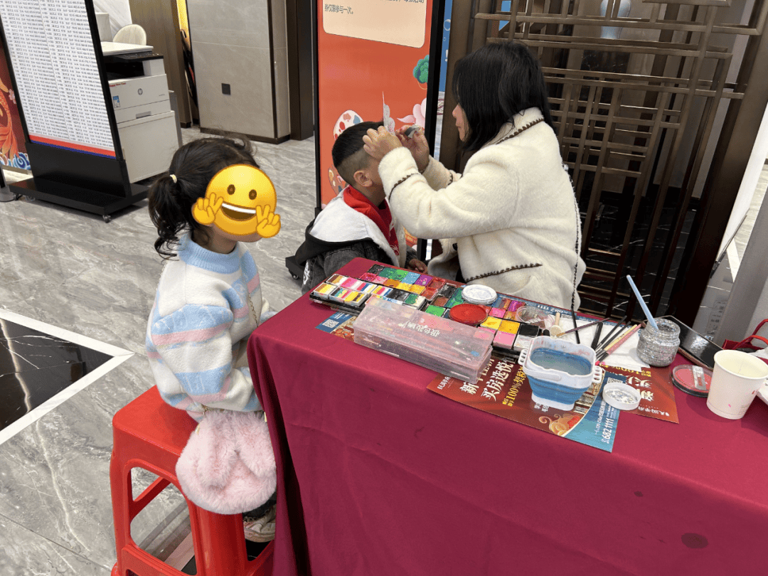 人脸彩绘区前,永远围着一群充满好奇心的小朋友和爱美的年轻人。专业的彩绘师手持画笔,寥寥几笔,喜庆的福字、可爱的马年萌宠、酷炫的国风纹样便跃然脸上。