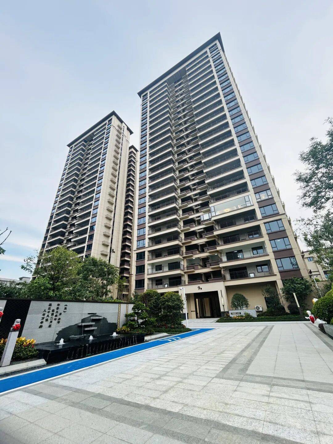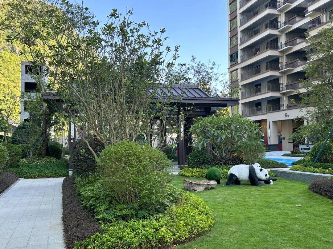 天润里项目在楼栋单元大堂前增加单元景墙设计,配以小桥流水增加意趣,再以花草树木进行点缀,意境尤佳。