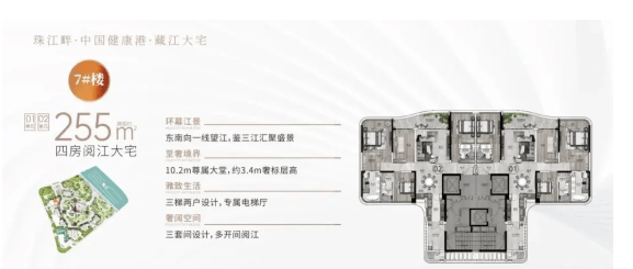 三、产品设计:139-355㎡江景大宅,精装现房所见即所得项目主力户型为 139-355㎡大平层,涵盖 139㎡舒适三房、191-255㎡奢阔四房、285-355㎡顶层复式等,满足不同家庭结构的改善需求。户型设计注重江景视野最大化,部分房源实现 270° 观江,搭配铝板 + 全幕玻璃外立面、圆弧玻璃设计,不仅颜值出众,更获双项美国建筑金奖及绿色建筑二星级认证。项目为精装现房交付,省去漫长等待期,业主可实地考察房屋品质、江景视野与社区配套,真正实现 “所见即所得”,交付标准对标顶豪,细节处尽显高端质感。