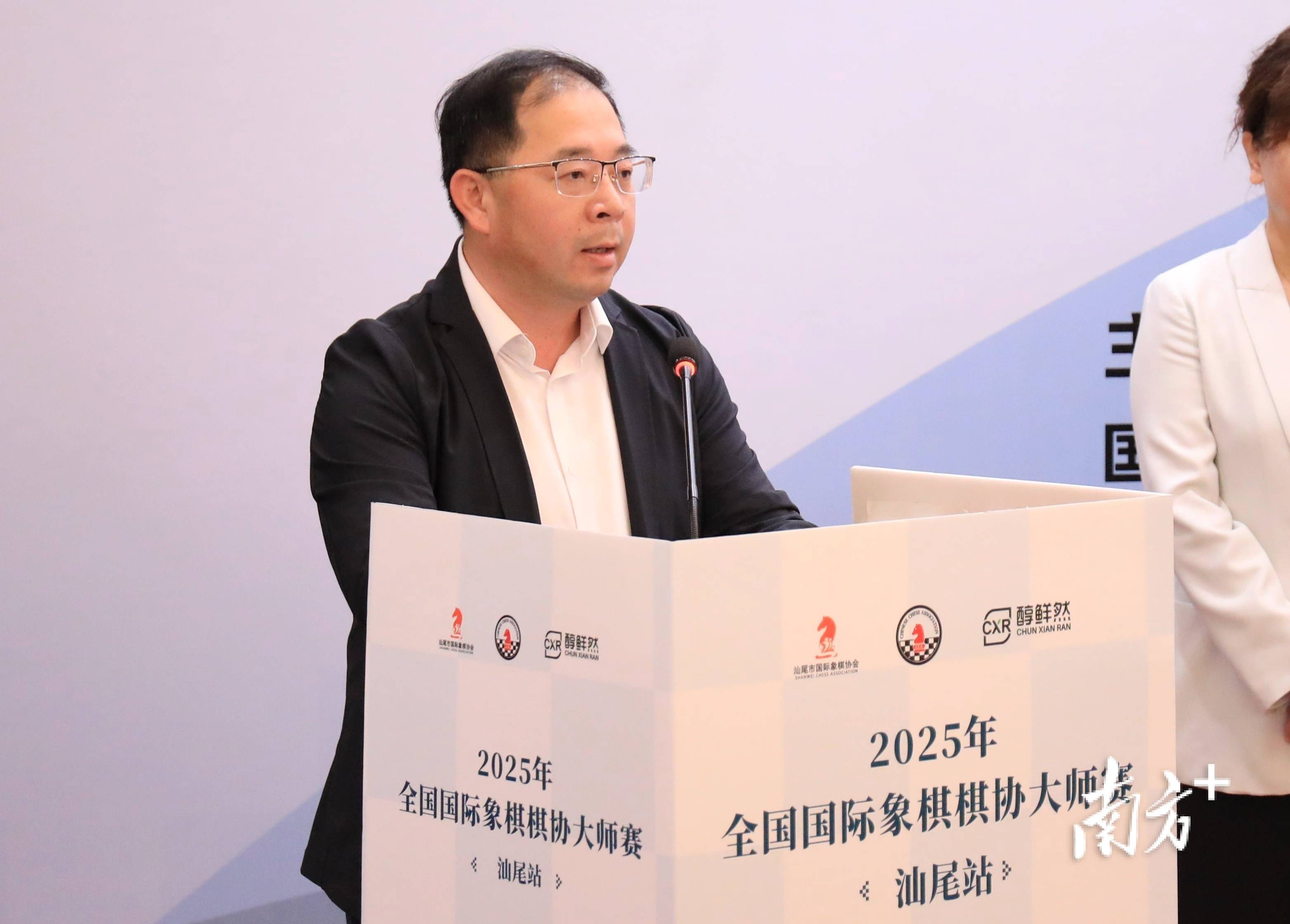 作为本次赛事举办的东道主,郑进铅代表汕尾市文广旅体局向各方领导来宾、优秀棋手及家属朋友们表示热烈欢迎和衷心感谢,他在致辞中表示,国际象棋既是智慧的博弈,也是理性与激情的共生体,这与汕尾山海交融、刚柔并济的城市气质相得益彰。从山海湖城到红色圣地,从水鸟天堂到森林氧吧,从梅花飘香到温泉涌动,借此赛事契机,他也诚邀大家来汕尾过暖冬,在此赏梅花、泡温泉、尝美食、看非遗,体现不一样的年俗文化,开启一场不一样的冬日之旅。最后,他也预祝本次赛事取得圆满成功,各位棋手在赛场上“棋”开得胜,争创佳绩。