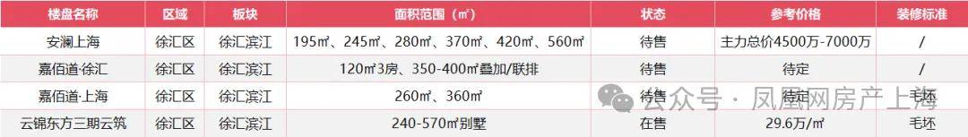 徐汇滨江共有4盘可选,除了嘉佰道·徐汇会有小户型外,其余三个项目均为顶豪大平层,面向追求极致生活品质的高净值客群。