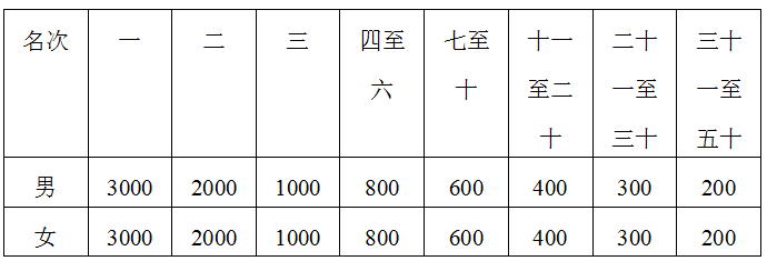 1.前六名按照达到的枪声计时成绩对应发放,其他名次按照达到的净计时成绩对应发放,名次不可递补;
