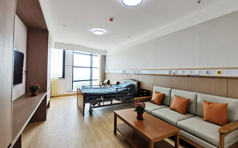 细节处的适老化设计更是贴心到骨子里:卫生间防滑处理、扶手安装到位,紧急呼叫系统一键直达护理站,长辈有任何需求,护理人员能快速赶到;房间内家具采用圆角设计,避免磕碰,地面无高差,方便长辈行走,即使是行动不便的长辈,也能在房间内自由活动。公共区域配套也毫不逊色,多功能厅、图书室、阅览室等一应俱全,宽敞明亮、温馨舒适,长辈可以在这里看书、聊天、开展文娱活动,丰富精神生活。同时,园区内配备专业的康复理疗设备,为术后康复、失能康复的长辈提供专属的康复训练空间,助力长辈恢复身体机能。