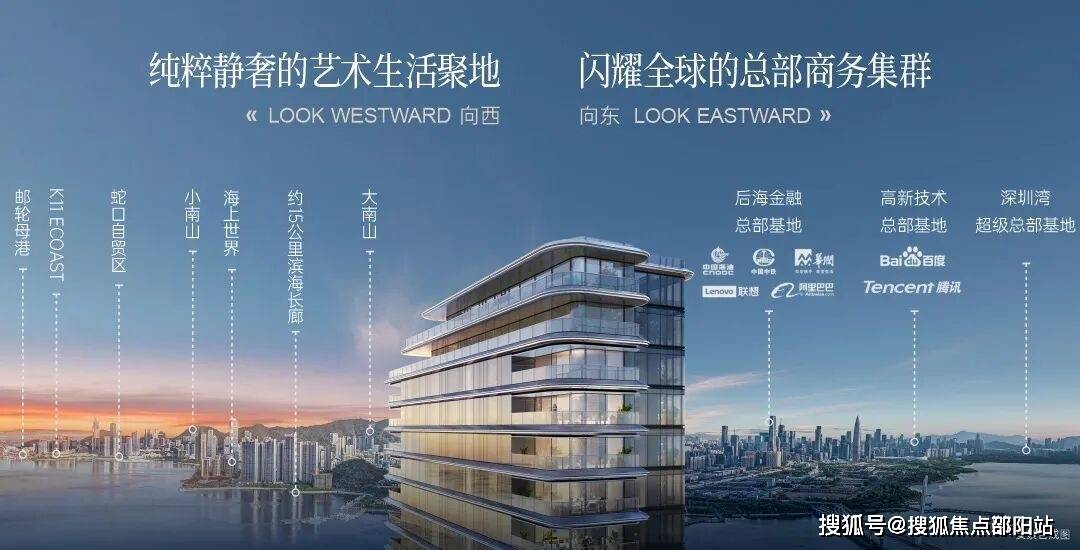 项目位于深圳湾后海东角头,三面环海,一线无遮挡看海,是深圳湾最后一块宅地。项目采用铸铝+Low-E曲面玻璃外立面,窗墙比达1:7,270°环幕阳台、转角无柱设计,层高3.3-3.6米,打造极致海景体验。