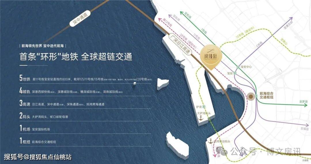 4城轨:深港西部快线 (规划) 、深惠城际线(在建)、穗深城际线(在建)、深珠城际线高速:沿江高速、深中通道(在建)、深珠通道(规划)、妈湾跨海通道